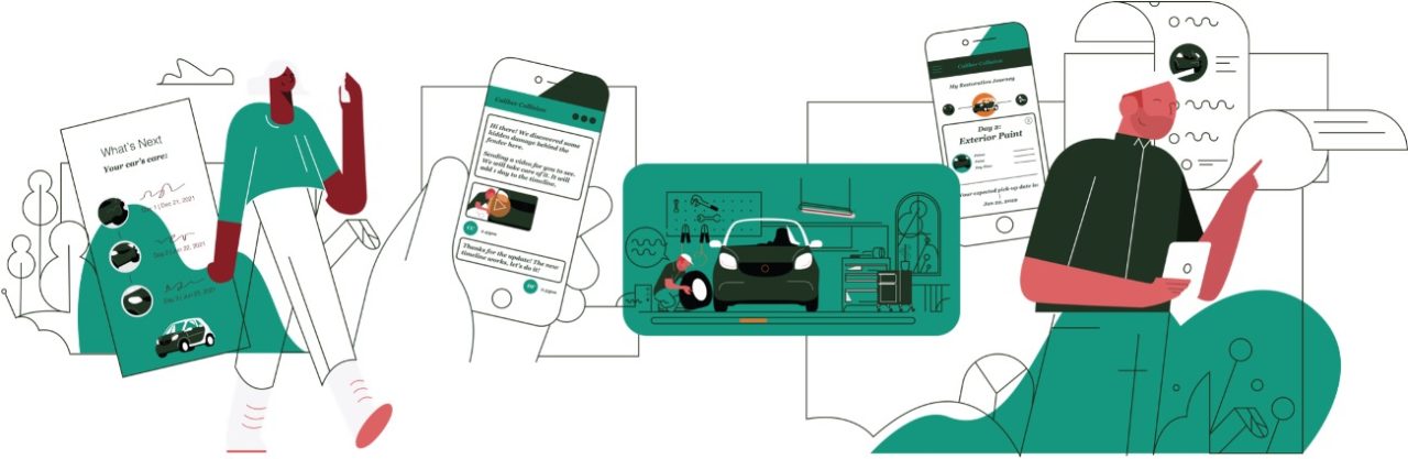 In one phase of this work, we explored future user experience scenarios for the implementation of Caliber’s mobile application, creating not only the information architecture and UI, but also envisioning how this would integrate with drivers’ everyday lives. In other phases, we built upon the work of internal cross-functional teams during the pandemic, developing customer experience journey maps and service blueprints, while envisioning opportunities that show how the ideal driver journey might look and feel in the future.